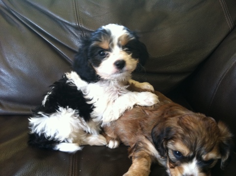 We weighed this little guy today and discovered he was much smaller than Chocolate Boy, even though he is 3 weeks older. He weighed in at just 2 lbs., 7oz., which means he is probably going to be less than 15 lbs as an adult. He sure packs a lot of cute into that tiny little body!!
