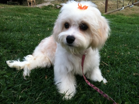 This is Sophie, a 7 month old Cavachon female. We have been working with Sophie for several weeks and she is ready for her new home. She can walk on the leash, sleep in her crate over night, and she will be spayed before going to her new home.