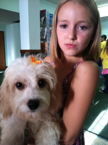 I’ve been taking Braden and Sophie with me everywhere, and especially to places that have children. On this evening, we all went to Pathfinders, a youth activity with our church that my children are involved in. Wow, was it ever eye-opening to realize that children are loud, quick with movements, and they can be quite overwhelming to a puppy! My kids are generally calm at home I guess because though these pups have been around them quite a bit, it wasn’t the same as at the church.