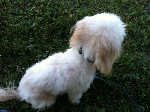 We recently did go to the groomer as his coat was matted and dirty from living in the country. If you prefer a longer coat, here is what he looked like before his haircut!