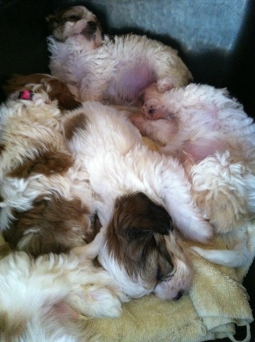 The Harmony Litter. Shichon. Their “den” is quite dark!