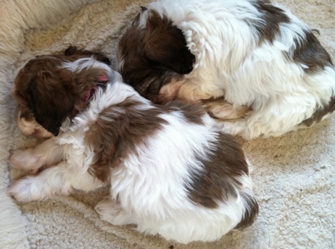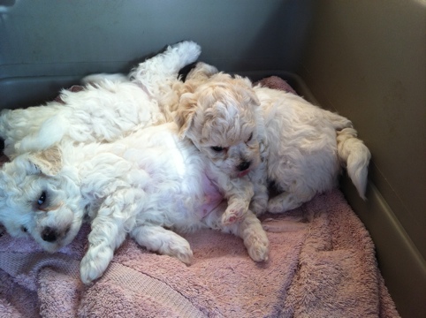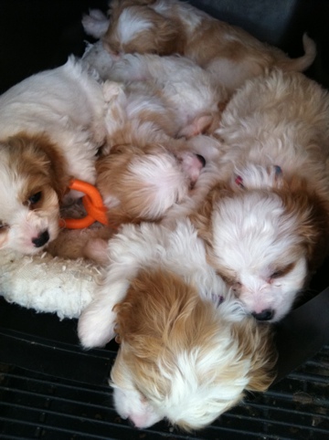 We are happy to announce the arrival of Princess’s Cavachon babies. There are 7 (yes, that’s SEVEN) thriving babies in this litter!