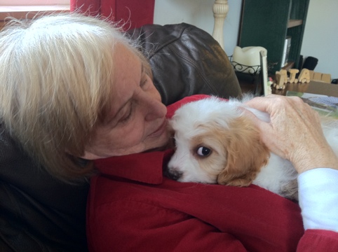 Having people come to our home in person to pick up their puppy is always a special treat. It used to happen a lot when we lived in California. But now that we live in the sticks, the wilderness, the boonies, having someone actually brave the distance and brave the roads is just plain special.
