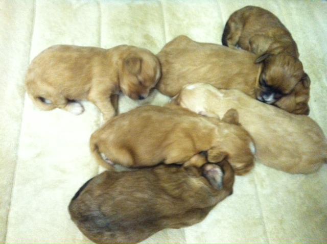 Just a quick peek at one of the new Cavachon litters. There are 6 puppies total.