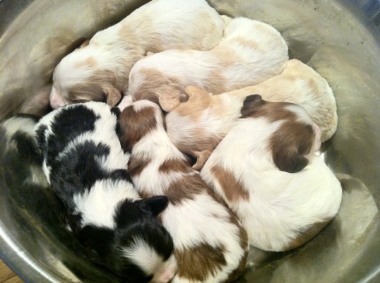 Pansy’s pups are beautiful, all 6 doing well, nursing, and growing. Their faces are SOO sweet right now!