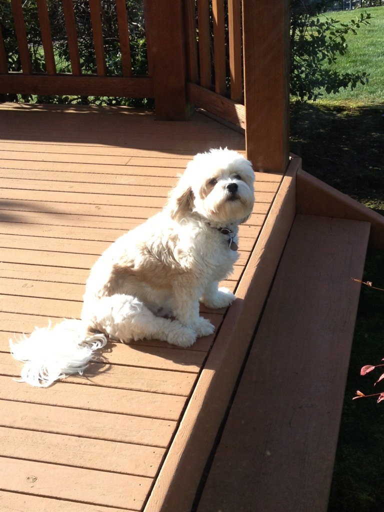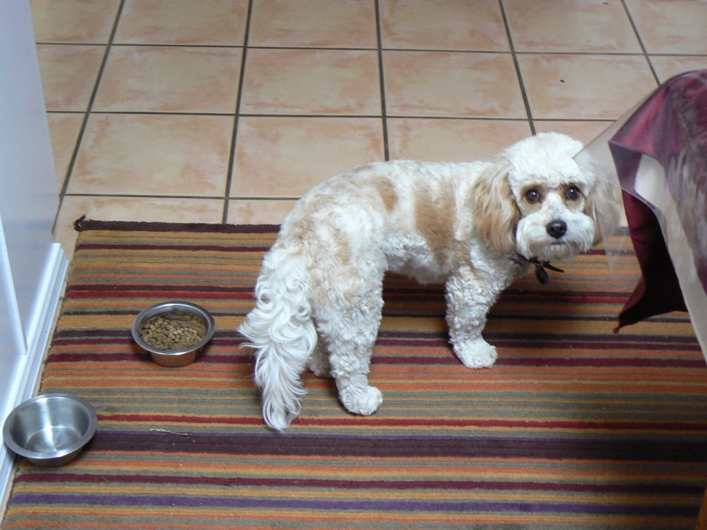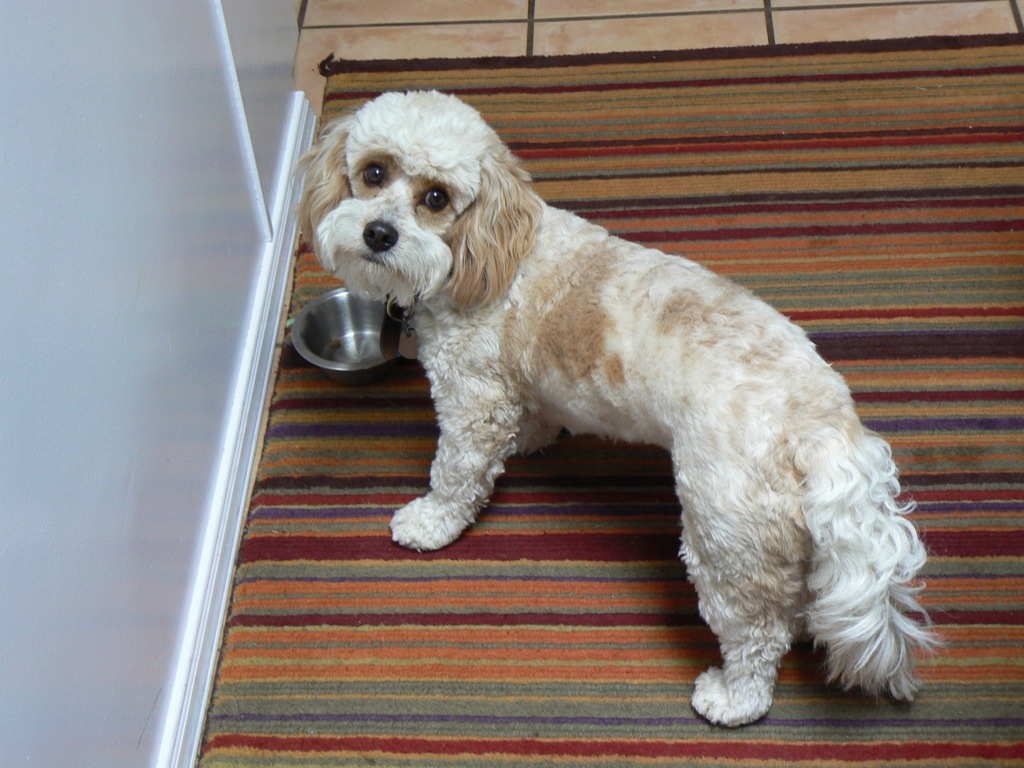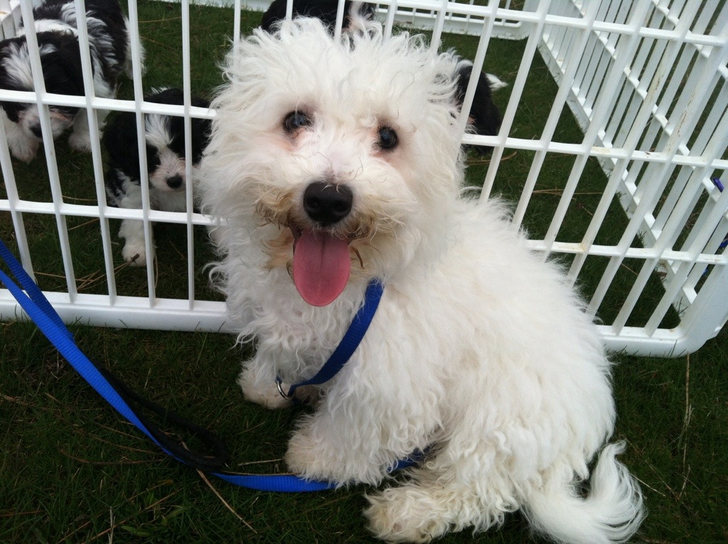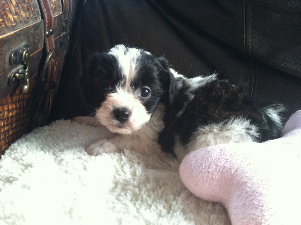 Today, the Bichon male will be going to his new home. Â He is the brother to 4 sisters that we have kept and are raising to become future mothers in our Cavachon breeding program. Â They are all growing so nicely, and to give you a taste of what the girls look like, here is their brother above. Â I’ve named them all after “Little Women”, so you should be seeing Amy, Meg, Beth, and Jo in the next year or so, as mother dogs to our future Cavachon puppies.