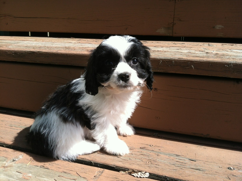 Meet Bella, the super sweet and loving and affectionate black/white female Cavachon from Chelsea and Sonny’s litter. All of her siblings have gone home and Bella is waiting for her forever home. She is an incredible pup and has all the wonderful traits that make Cavachons so appealing as family pets.