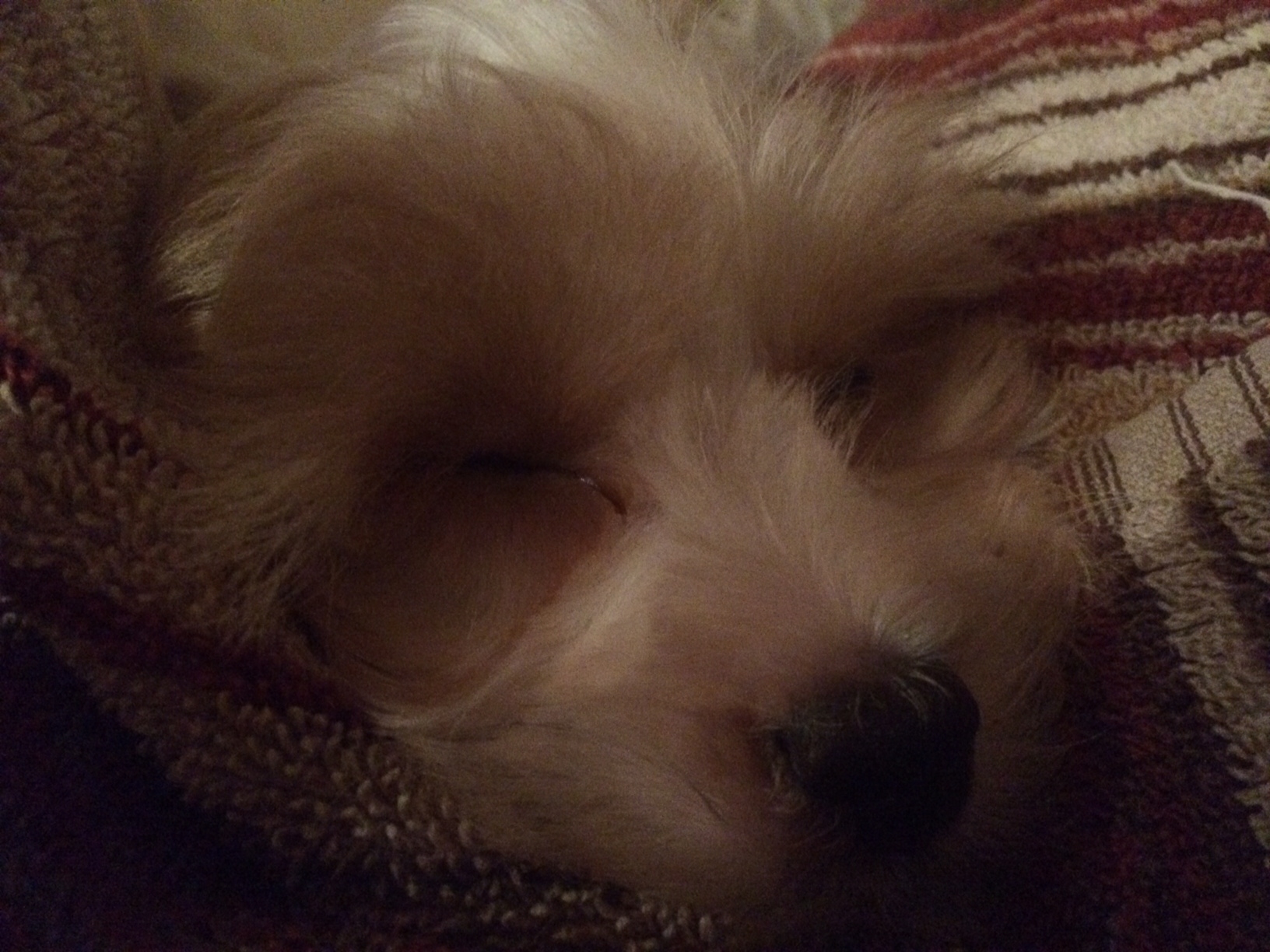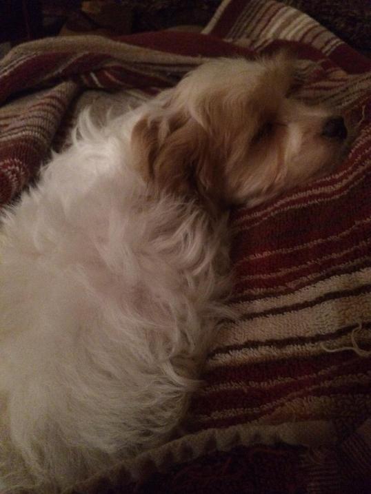 Nothing better than a cuddly puppy curled up next to you while watching TV!!