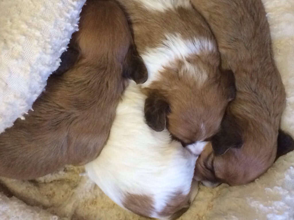 Jesse’s litter. 2 sable/white girls, 2 sable/white boys.