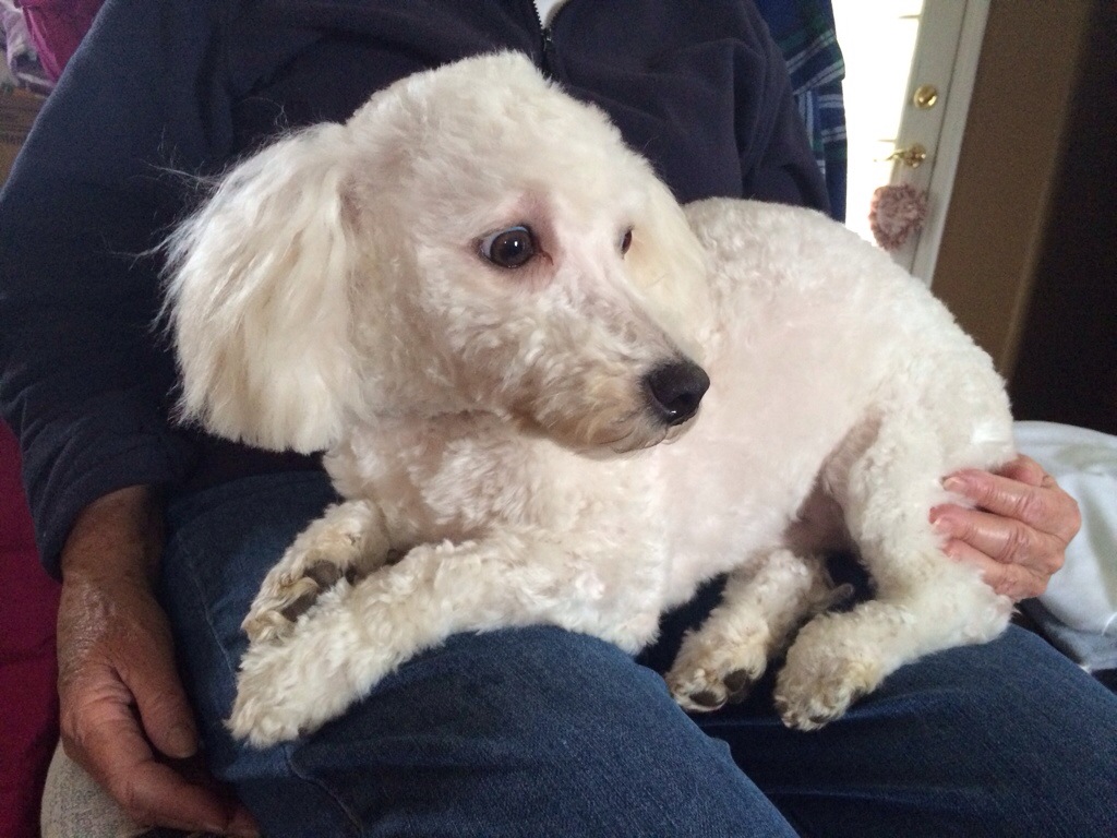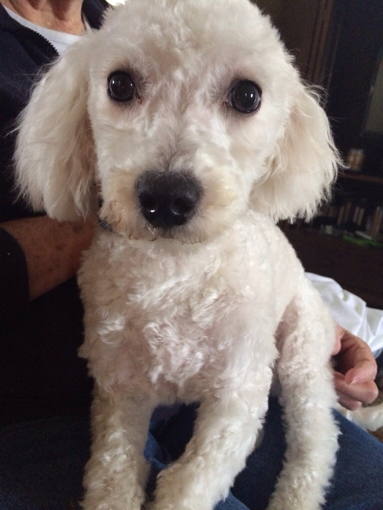 Shy, 8 month old Bichon Frise male. He will be neutered Friday and ready for a new home after that.