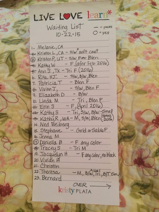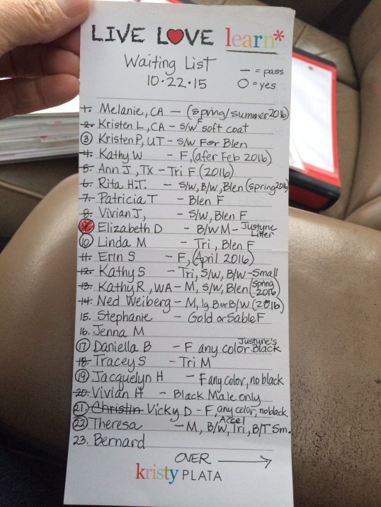 4:30 pm…receive call from vet. Mama and puppies are doing well. Puppies?? I’m amazed and delighted we have puppies. I didn’t ask about colors or genders or numbers.
