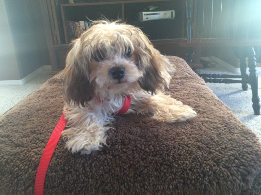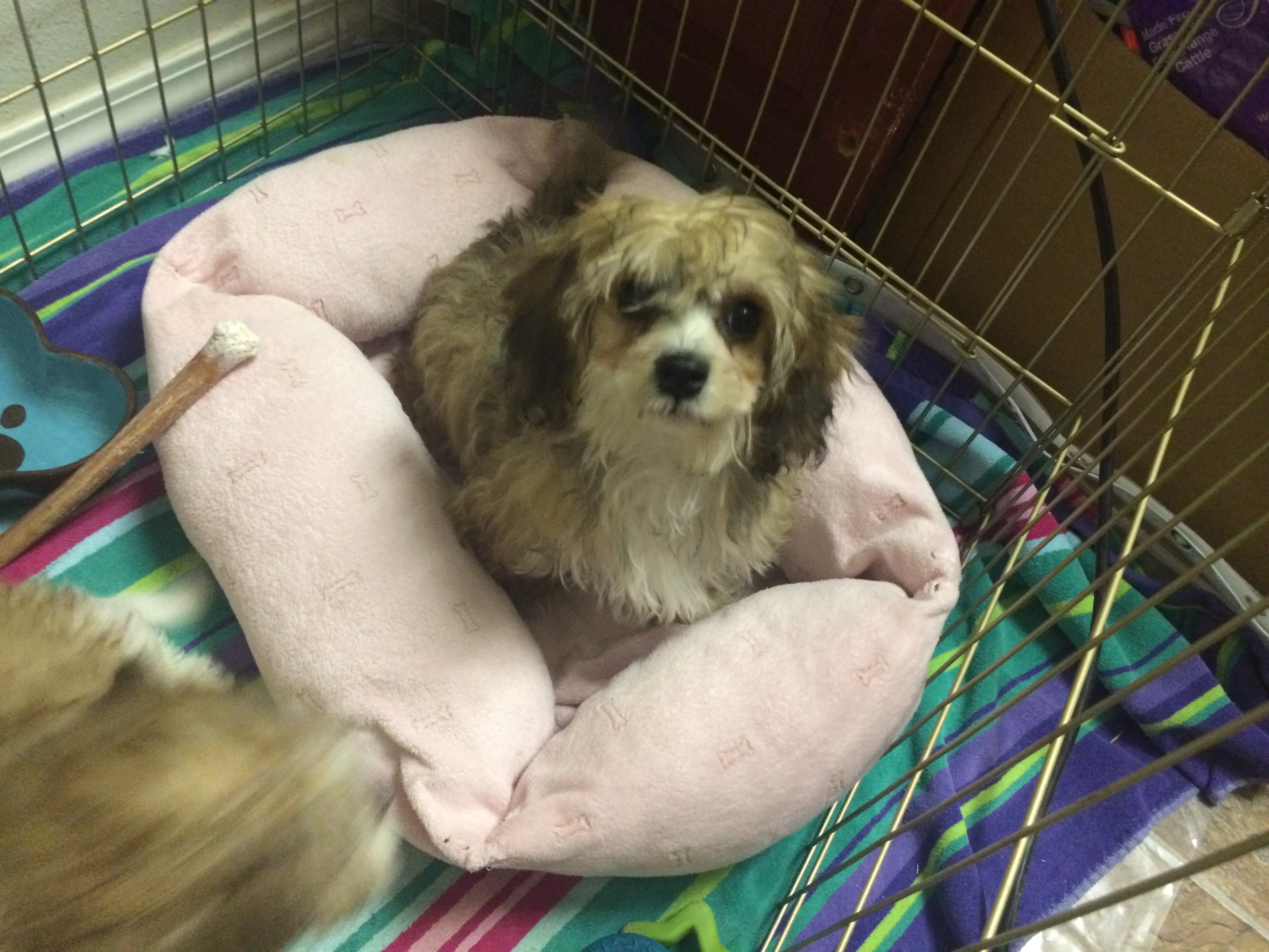 He is basically a “phase 2” Accelerated Puppy, yet without the full cost. He walks on a leash, does stairs with ease, sleeps in a crate, and is a gentle spirit and loves to cuddle. He loves the kids at school and he is a pleasant little guy to have around. He needs final potty training and that’s about it.