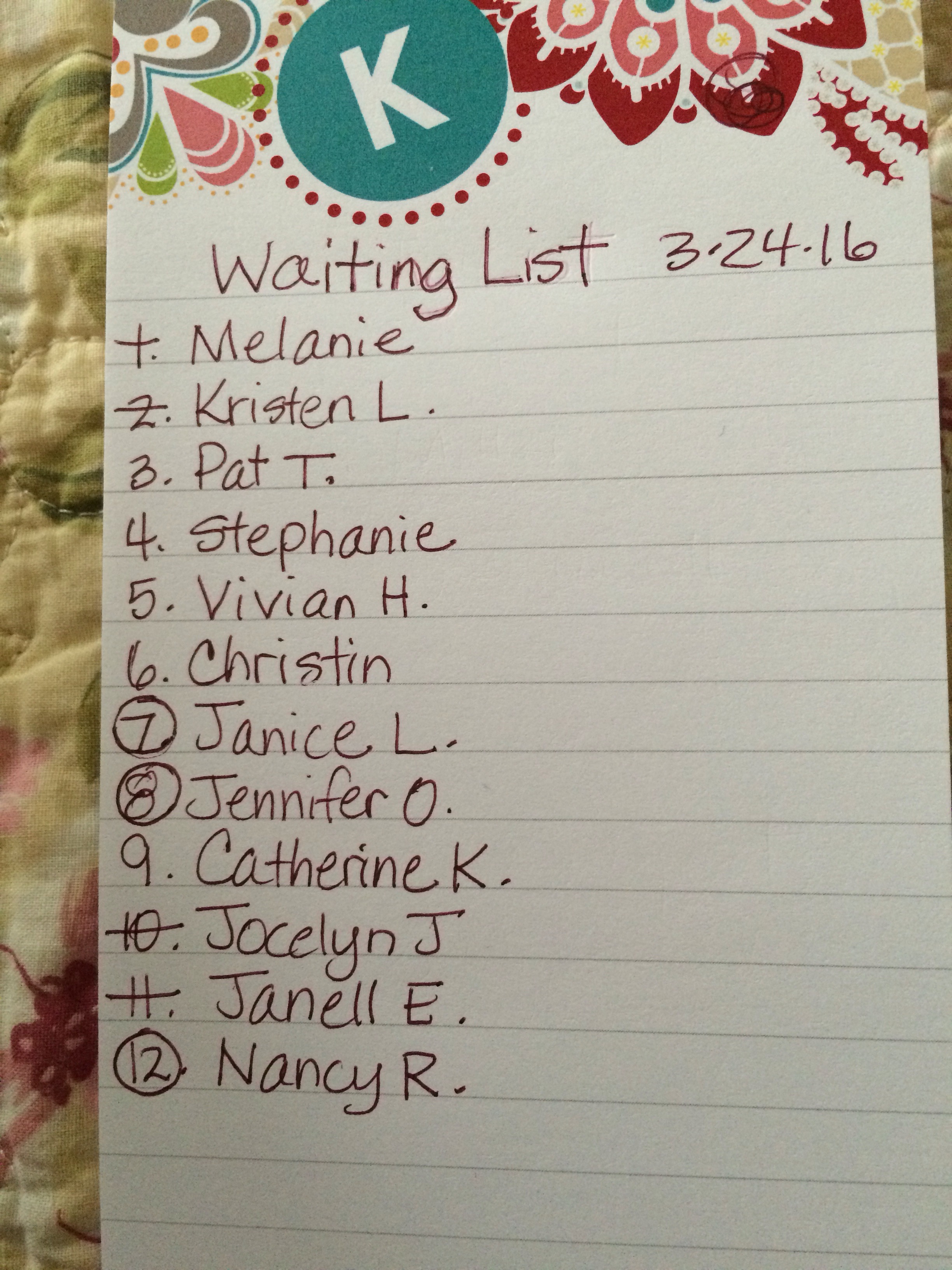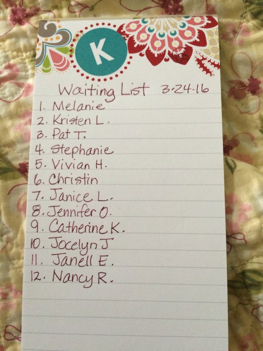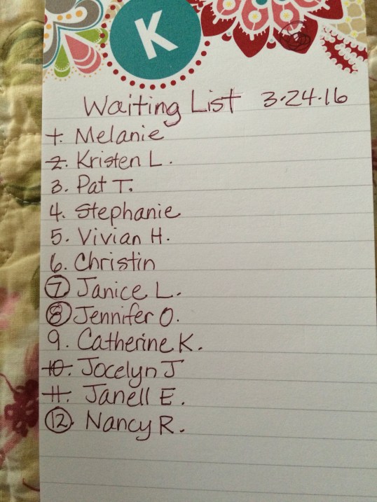 I am also going to discontinue the pre-wait list and just go back to doing things my regular way, because it’s too co fusing for me to have 2 lists!