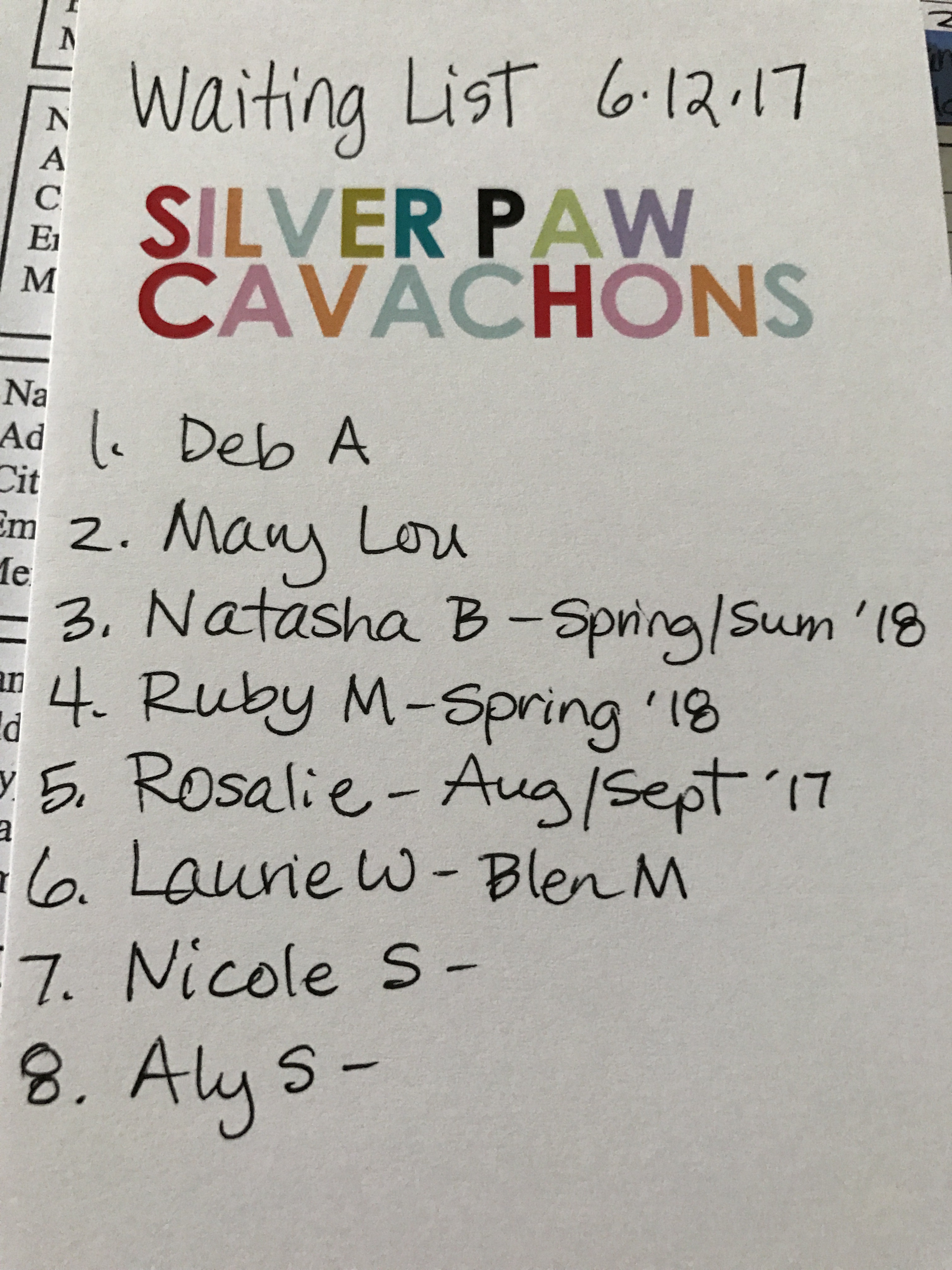 I will be posting new videos of all the puppies on our Facebook page, and if I figure things out I will post links to our Silver Paw Cavachons YouTube channel.