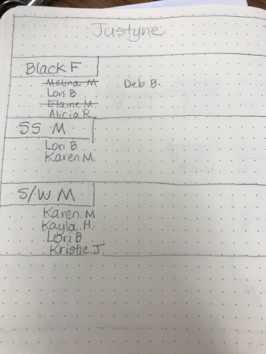 Waiting List. Sorry it’s scribbled! I’m away from home and didn’t have my list pad to write a new one after matching the Kenzie pups. A couple others made different plans as well.