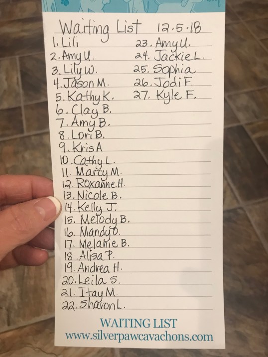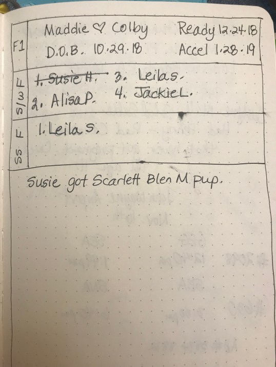 Please get in touch with me if your name is on these lists for the current puppies. I’d like to get the Roxy and Maddie pups matched!!