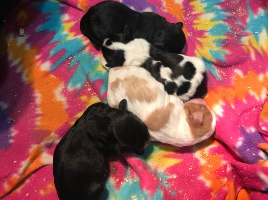 I’ve created a litter page for each of our current litters of brand new puppies. They are on the sidebar of the blog. You can simply click on the parent names and the link will take you to the page. All of the babies are under 2 weeks old so we are just getting started with the next round of fun! We are taking names from anyone already on the waiting list if you’re interested in any specific puppy. We will match puppies when they are 5 weeks old and/or in the order of the waiting list. I will do my best to update their photos/videos each week! Enjoy!