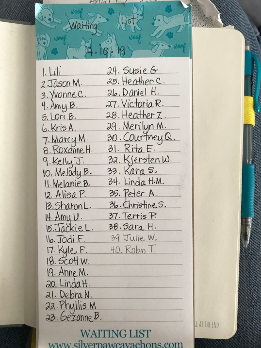 I’ll update what I can from CA. Here is the most current waiting list and a list of the current puppies and their colors and genders.