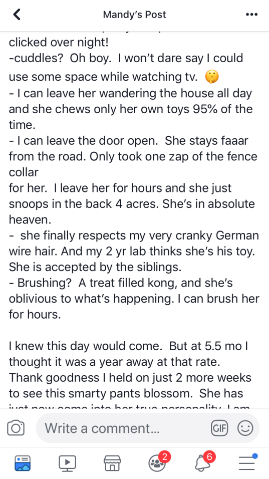Her story needs to be shared. Getting a puppy is hard work and results do t always come in a timely manner, or in the timeline we think should happen.