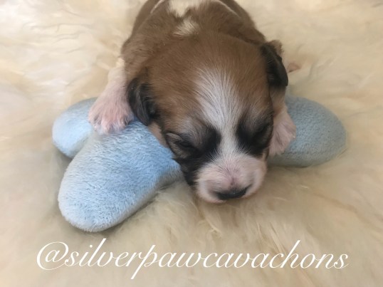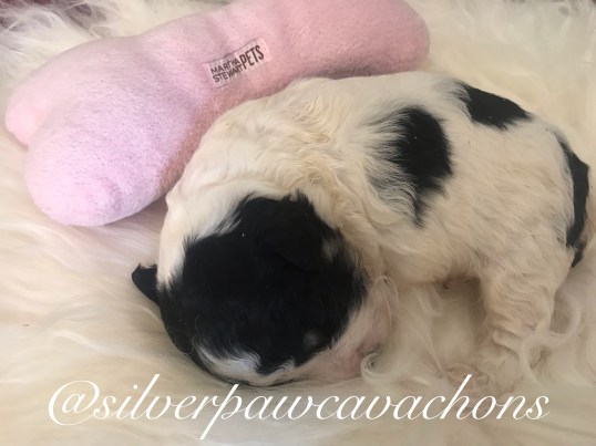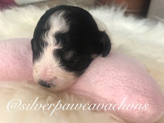 As for other puppies, we have a beautiful 13 week old female, mostly white, F1b Cavachon that is still waiting for her new home.