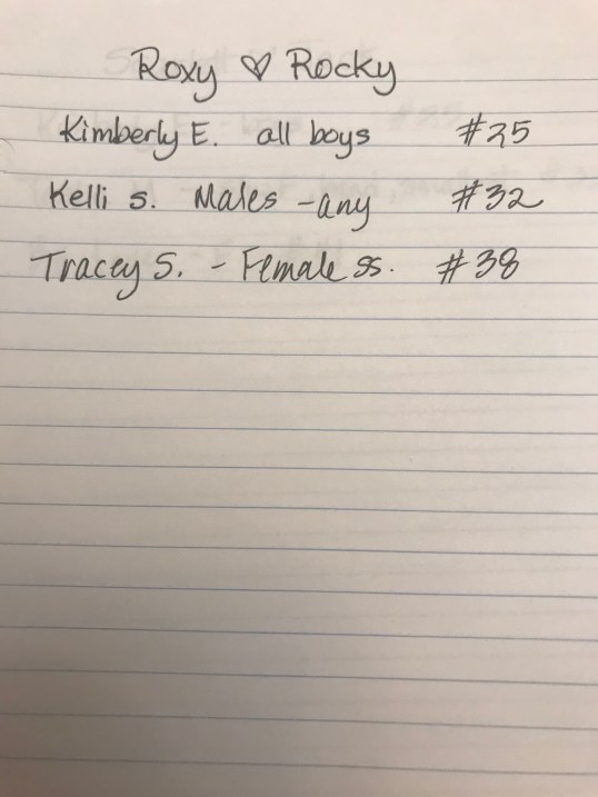 I am also planning to post the Roxy pups. Right now I have 3 pups from Roxy and just two names of people I retested, so we have space for at least one more name!