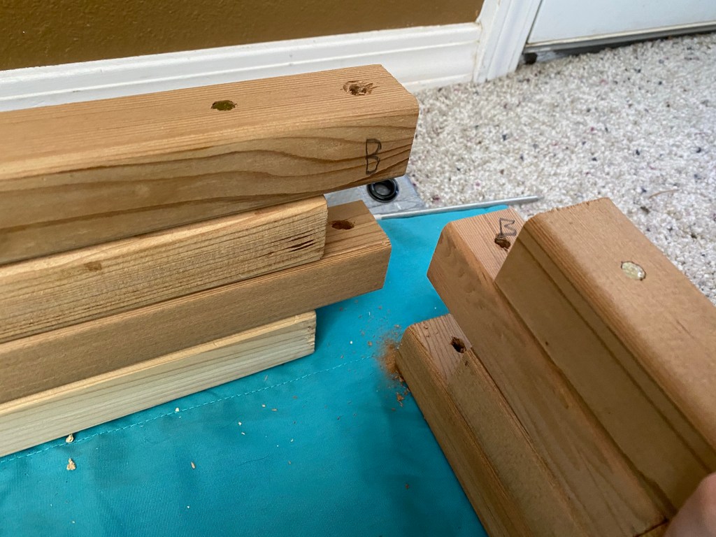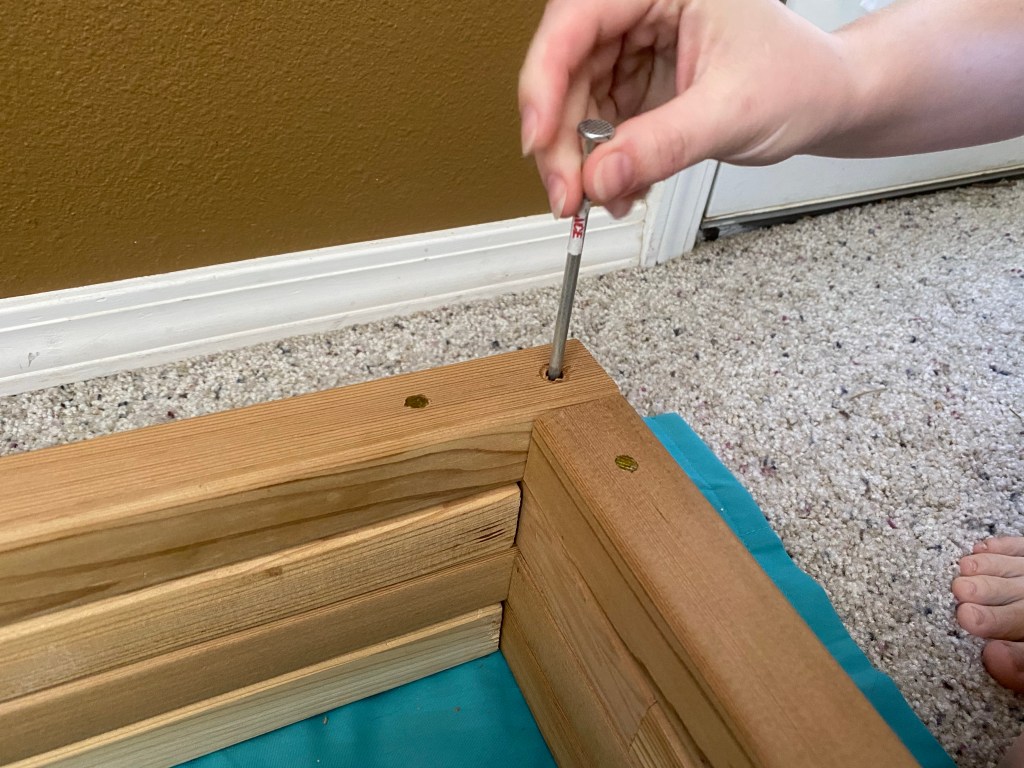 I told D we needed 2×6’s and hinges to create a frame that could be moved or taken down when necessary. He suggested using the cedar boards we used to build our garden boxes. “Great idea,” I said, and he went to work.
