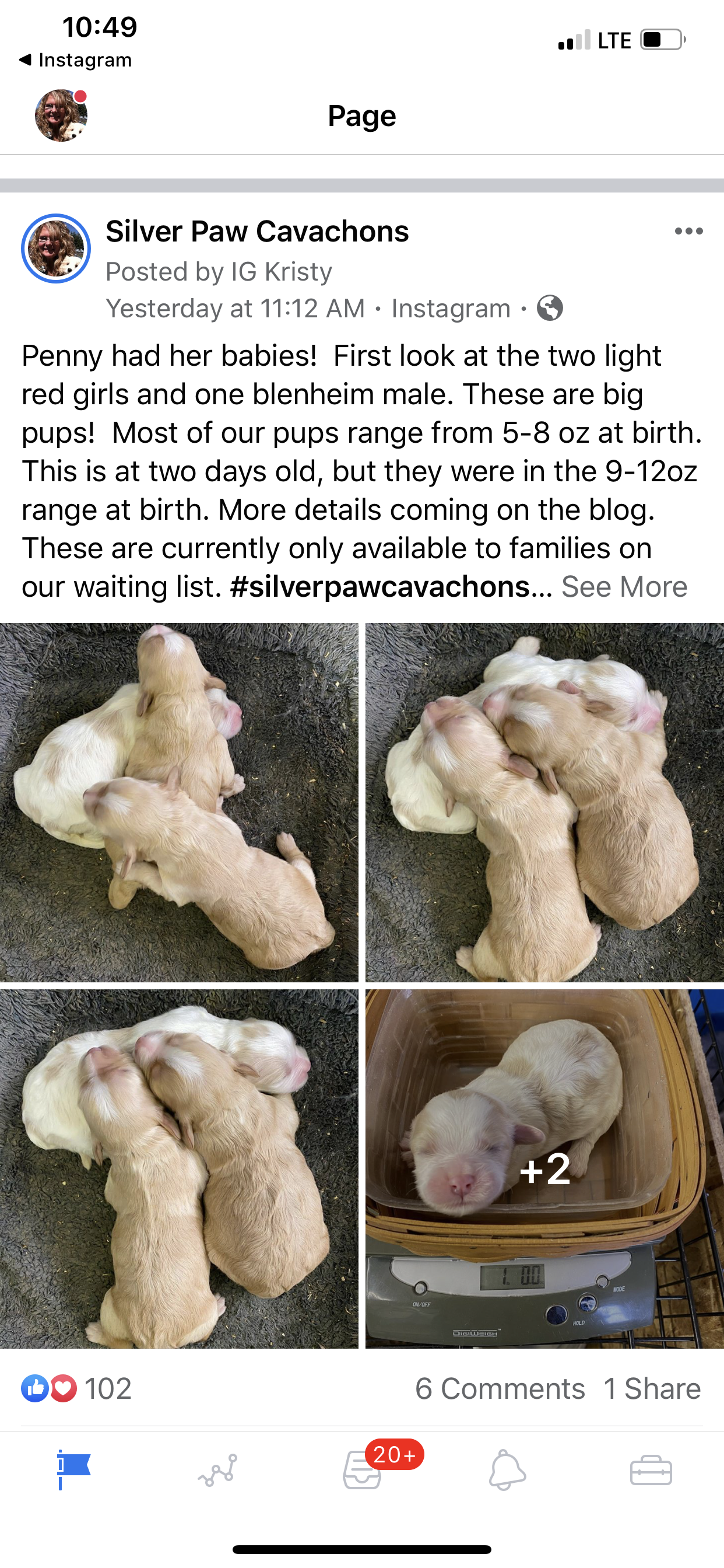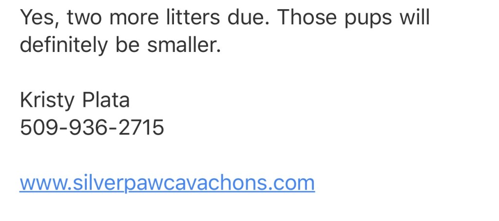 You can find us on Facebook at Silver Paw Cavachons, IG @silverpawcavachons, and of course here on the website at http://www.silverpawcavachons.com.