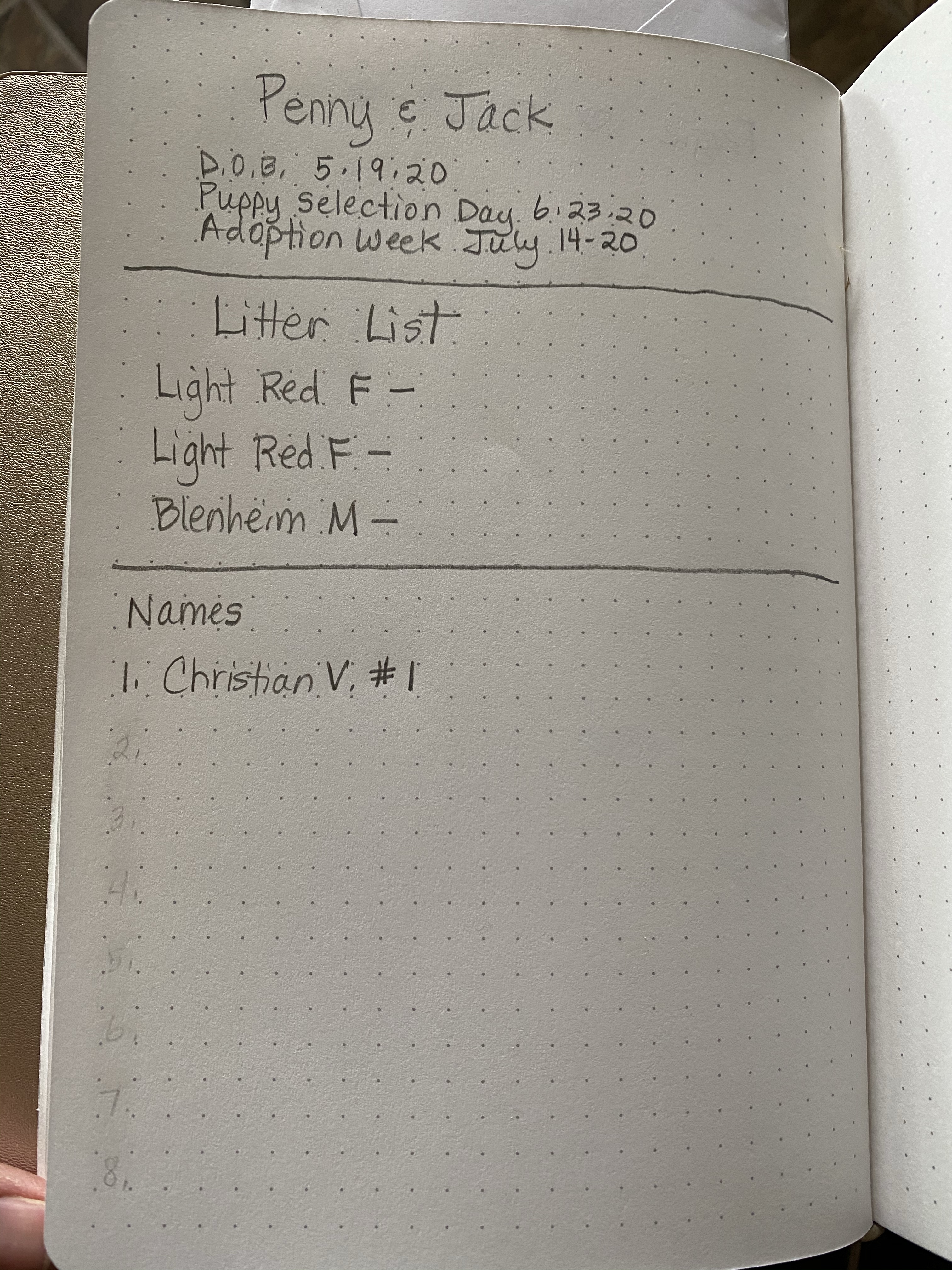 At 5 weeks old, I will take all the names that are on the litter list and put them in official waiting list order. And then I will start calling people. This is when we cover as much detail as possible about personality, characteristics, and finding the right match for your family. You may or may not be matched to a puppy at this point, but we comb over the details as best as we can during this process.