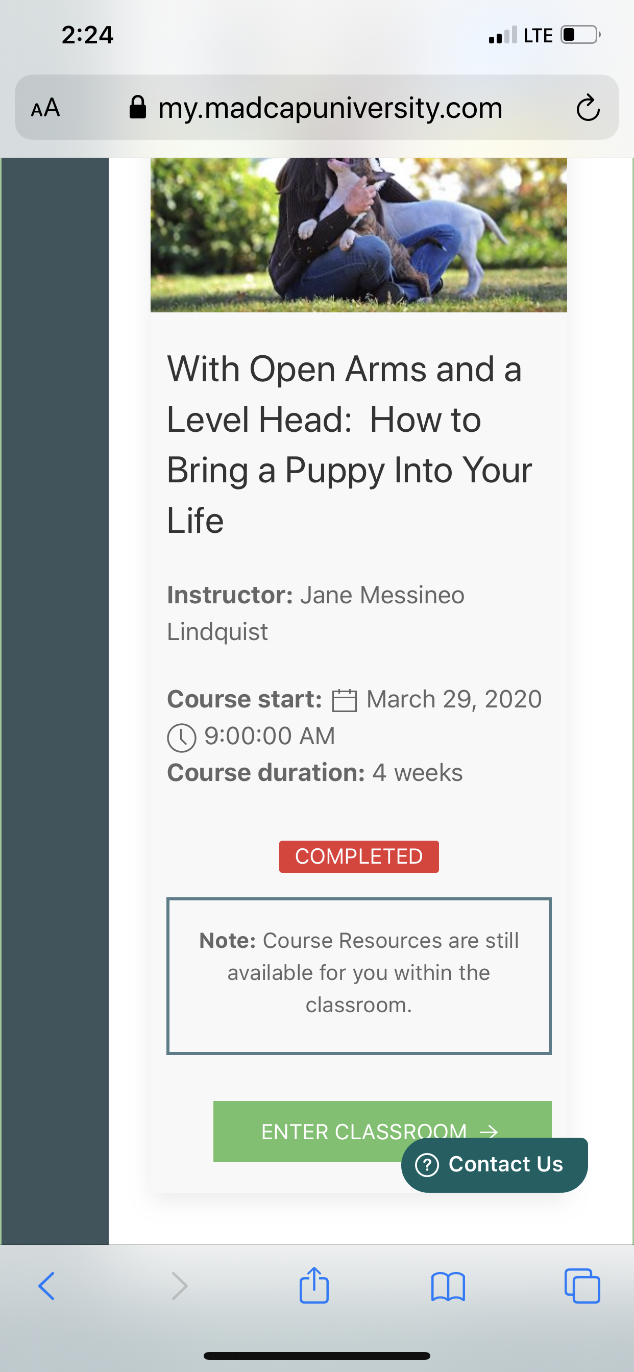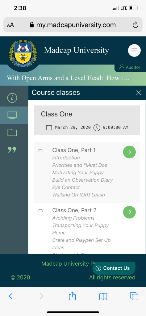 It sounds like some of you are having some challenges watching the Puppy Training course. I went back through and took some screen shots because yes, it’s not super user friendly to find it on the website. Hopefully these screenshots will help. This is on my iPhone. I don’t know what it looks like on the actual computer.