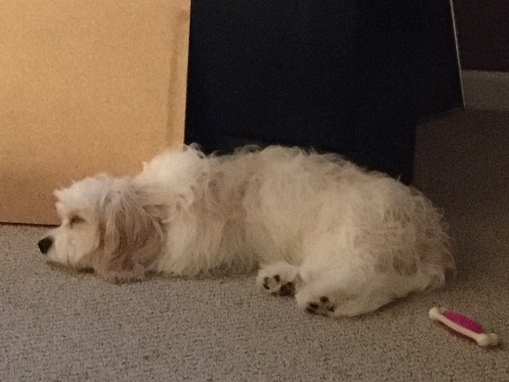 He has been to the groomer where he had his teeth cleaned, his nails cut and coat washed and brushed.