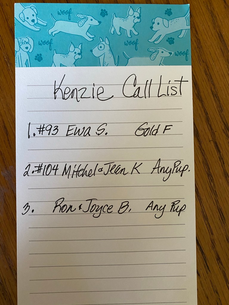 It’s time to match the Kenzie Litter. Here is the call list. I’ll be calling today.