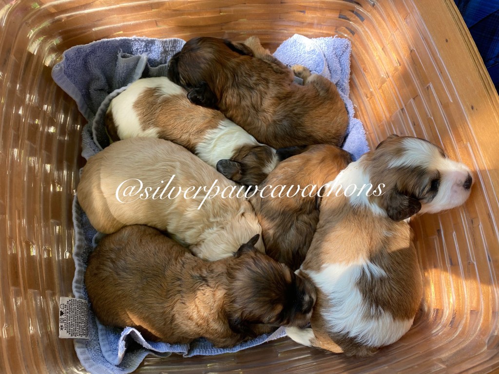 The next litter is from Olivia. She was bred to Jester and had six puppies. There are lots of sable or sable/white puppies in this litter, and they should be from 15-20 lbs as adults.