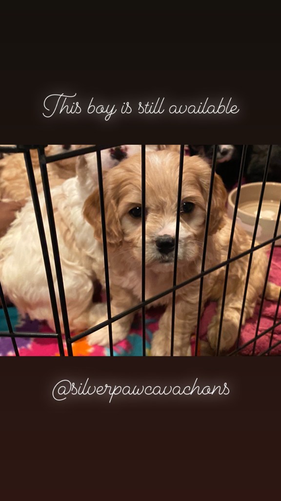 I also want to put out a plug for our Instagram account @ silverpawcavachons. I am going to be using IG stories a lot in the future to communicate the details. You won’t want to miss it. If you’re following our FB page you will get the same info as IG feeds right into Facebook.