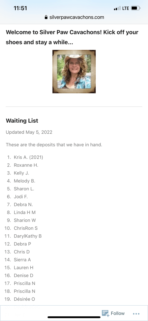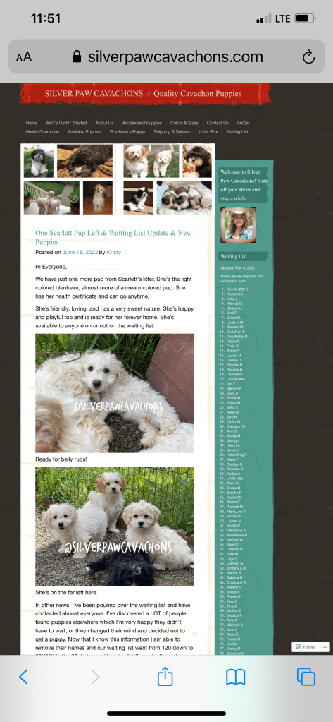 I hope that clears things up. Reach out if you have questions and be sure you are subscribed to the website/blog if you don’t want to miss any details about what is happening at Silver Paw Cavachons!!