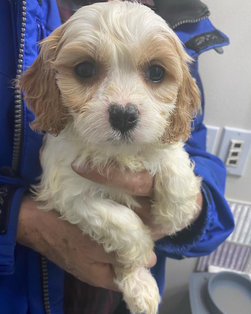 Two Cavachons, a girl and a boy. Both blenheim in color.