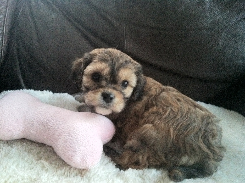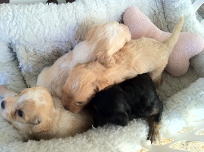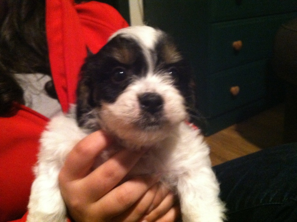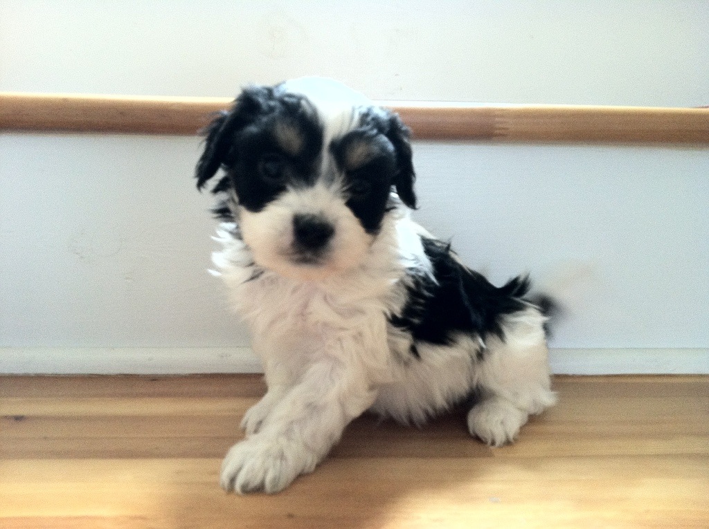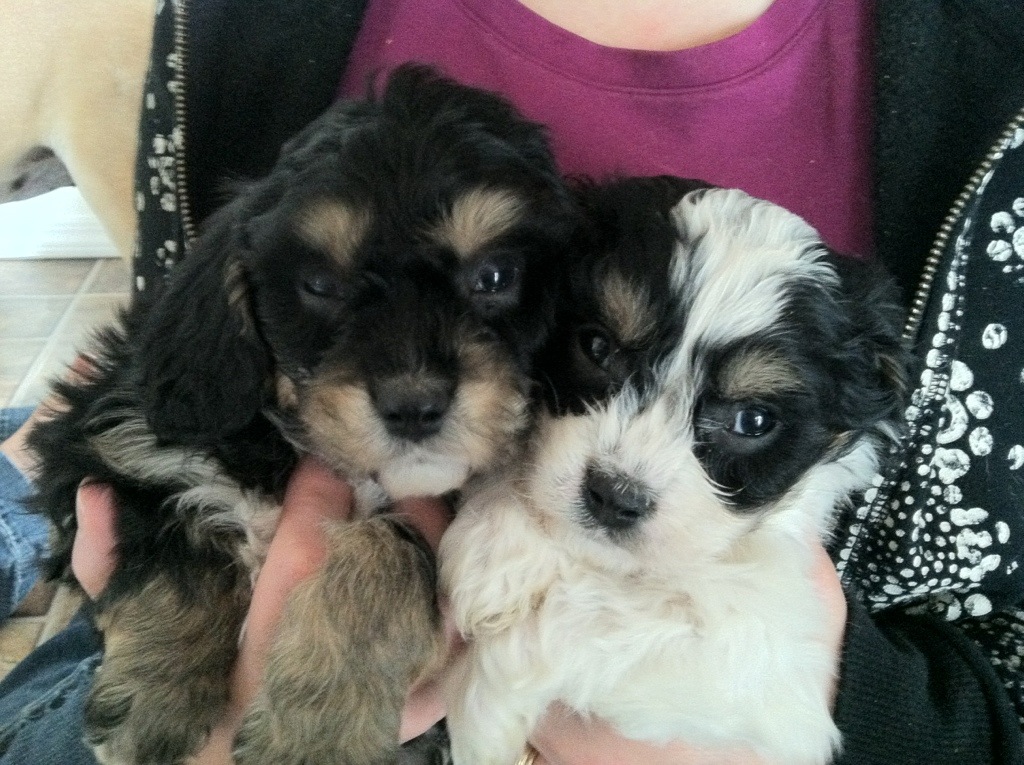 We have another litter that is now five weeks old and we are taking names for these puppies. They are the crew from Mimi, a small Bichon Frise! Dad is a black/tan Cavalier and we got all the rarest colors in this litter!