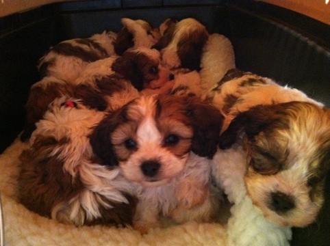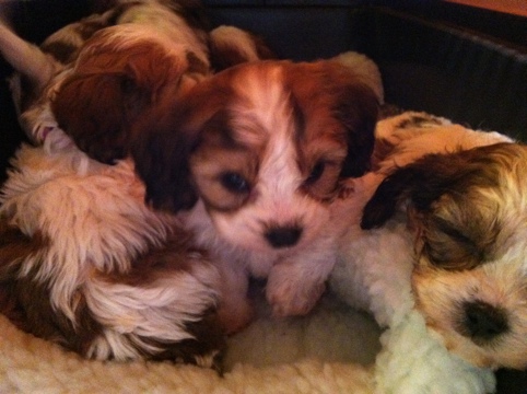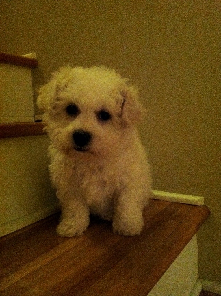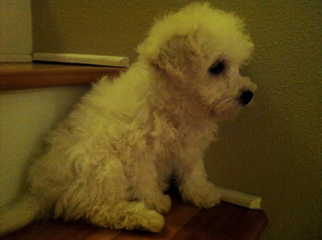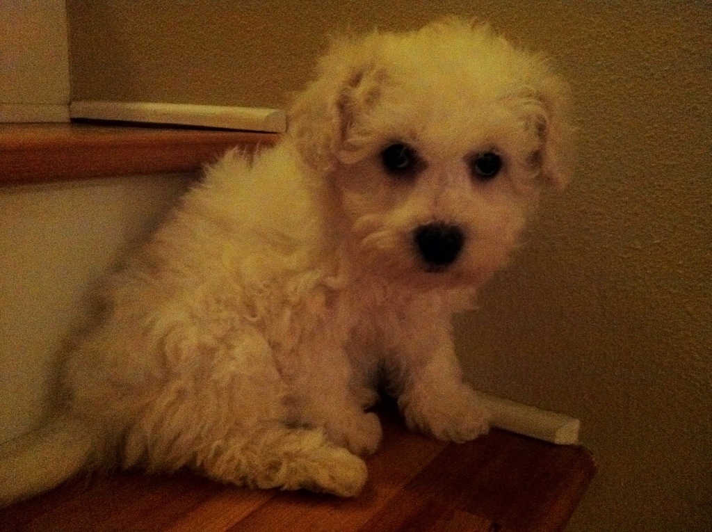 We have just one Bichon Frise Male puppy still available. His brother went home this morning to be the 2nd pup to a family with a female Cavachon. He’s going to make a perfect little brother.