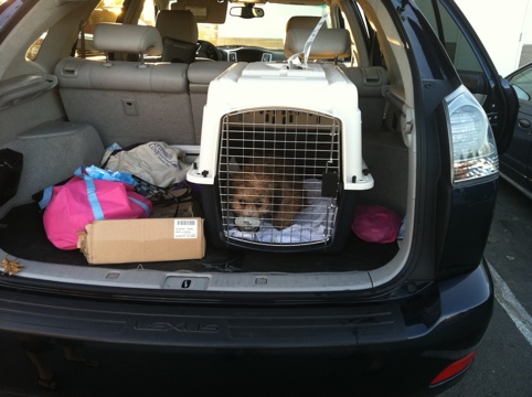 I flew with Molly and Winston to CA, and met their new families at a local Arco Station. They were both prepared with a crate for their drives home.